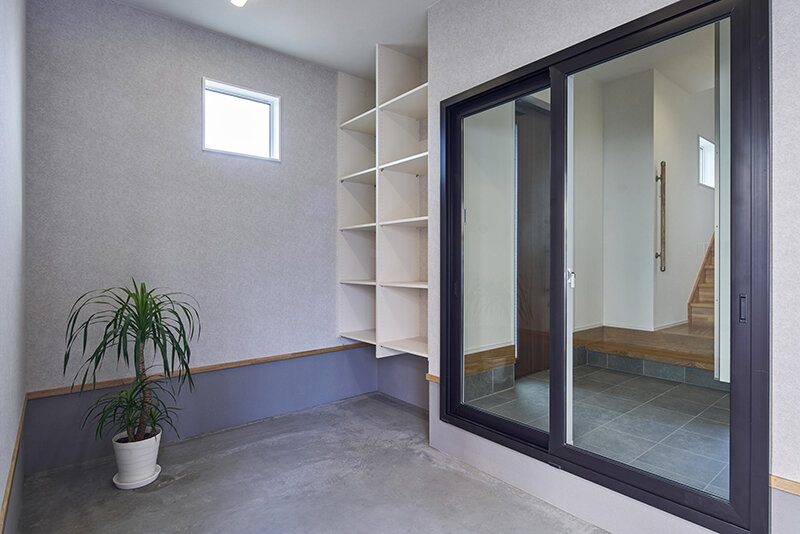玄関へ直接アクセスできる動線を確保しており、道路や隣家との距離が近い立地でも快適性と機能性を両立した、都市型住宅の最適解。 -